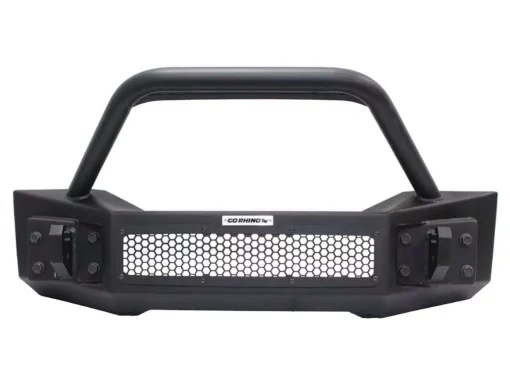 Rockline Front Winch Bumper for Sale USA, The Go Rhino Rockline Stubby PreRunner Front Winch Bumper is built for truck enthusiasts who demand both durability and performance. Constructed from high-strength steel, this bumper withstands impacts, corrosion, and harsh off-road conditions. Its fully welded design ensures long-lasting strength, protecting your truck in the USA and Australia. Ideal for off-road adventures, daily driving, and tough work environments, this bumper offers unmatched reliability and resilience.